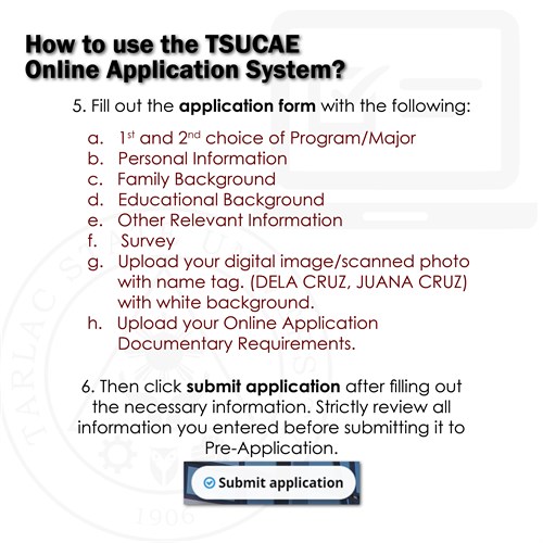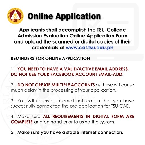 ๐จ๐ซ๐ฆ and ๐ฎ๐ฉ๐ฅ๐จ๐๐ ๐ญ๐ก๐ ๐ฌ๐๐๐ง๐ง๐๐ ๐จ๐ซ ๐๐ข๐ ๐ข๐ญ๐๐ฅ ๐๐จ๐ฉ๐ข๐๐ฌ ๐จ๐ ๐ญ๐ก๐๐ข๐ซ ๐๐ซ๐๐๐๐ง๐ญ๐ข๐๐ฅ๐ฌ/๐ซ๐๐ช๐ฎ๐ข๐ซ๐๐ฆ๐๐ง๐ญ๐ฌ at https://cat.tsu.edu.ph/. See detailed instructions for online application on the attached images below.