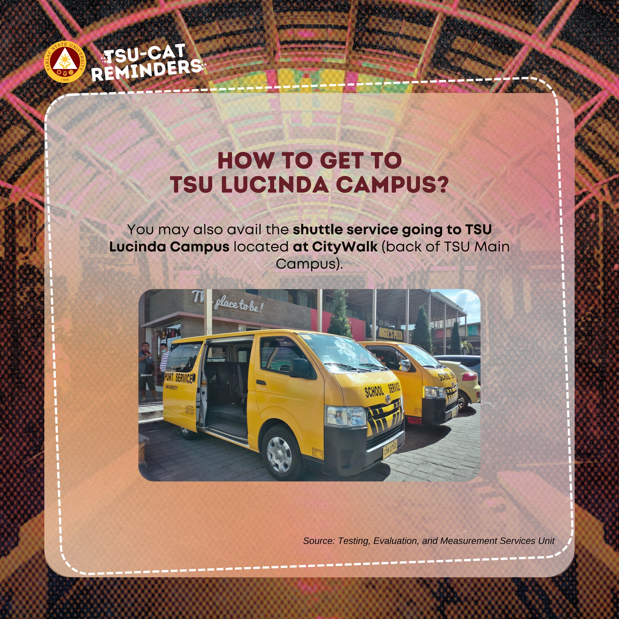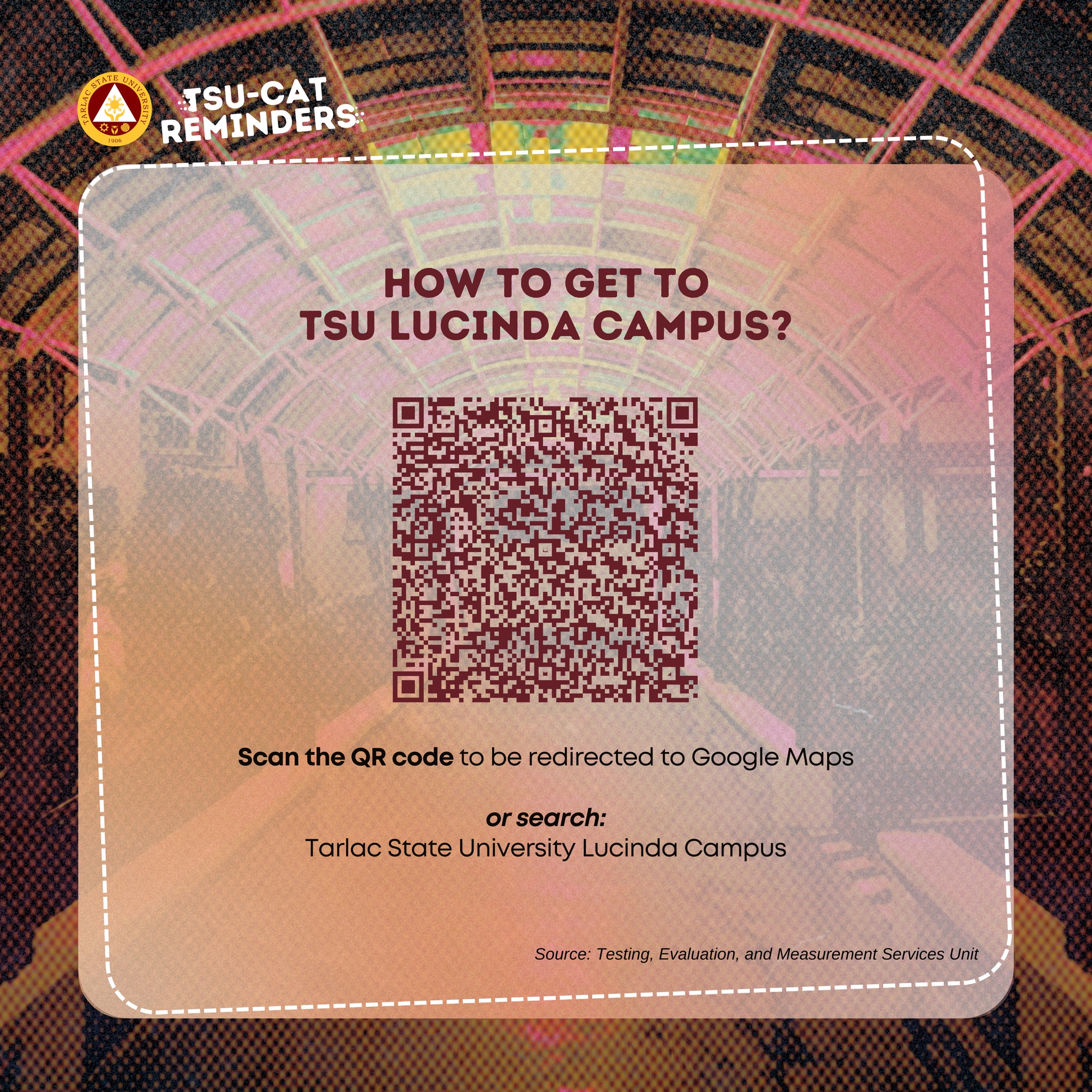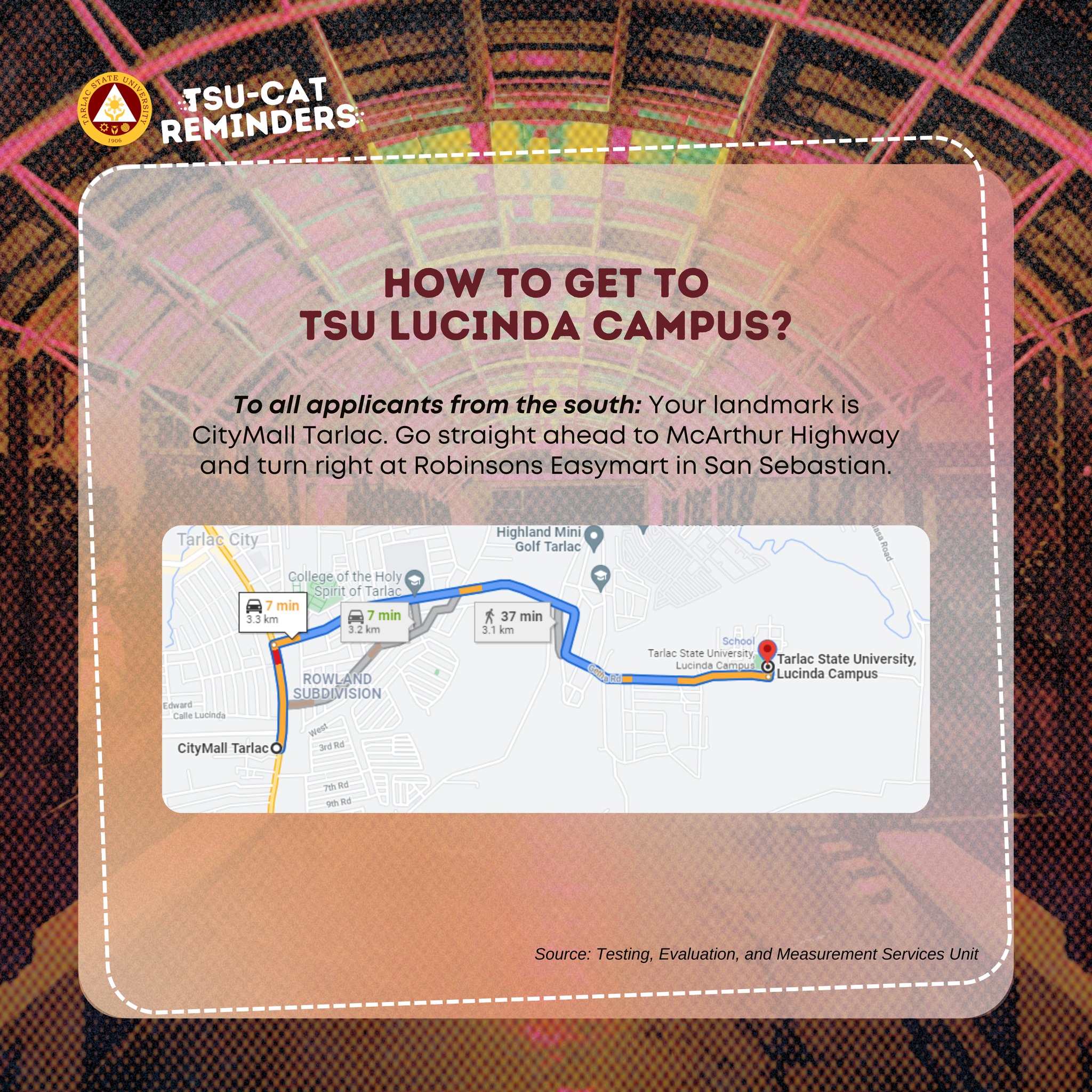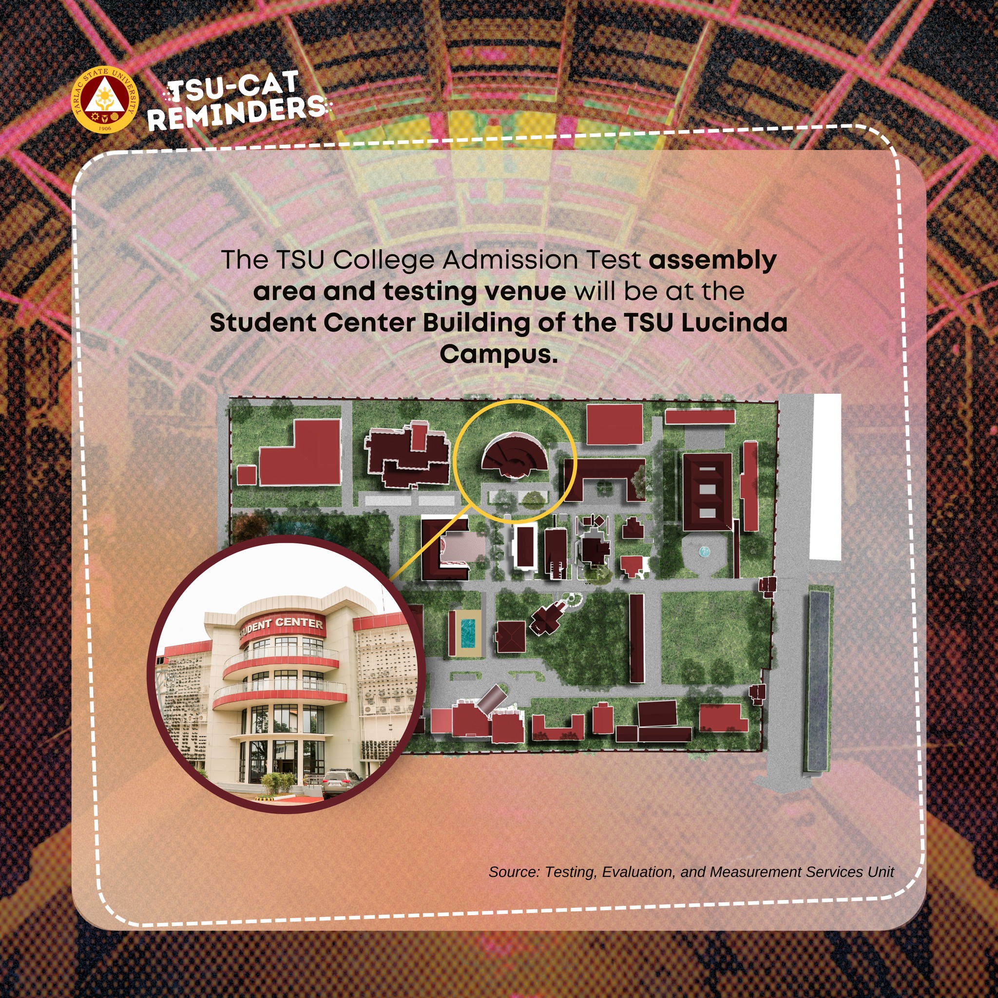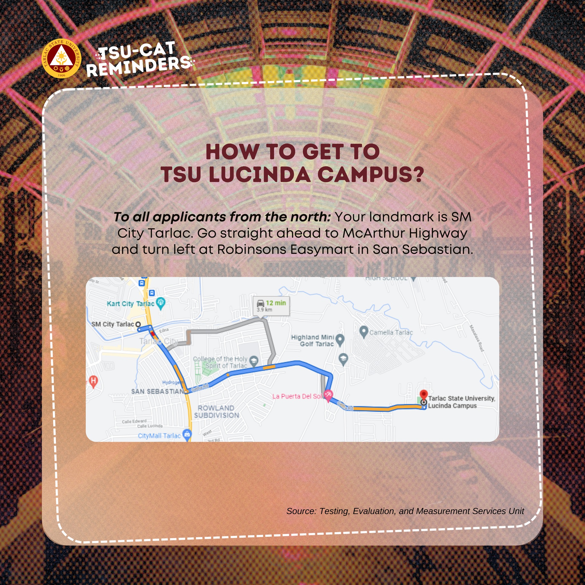 Examinees can view the uploaded social media cards to see what to bring during the admission test, what to do before and after the examination, and directions to the TSU Lucinda Campus.