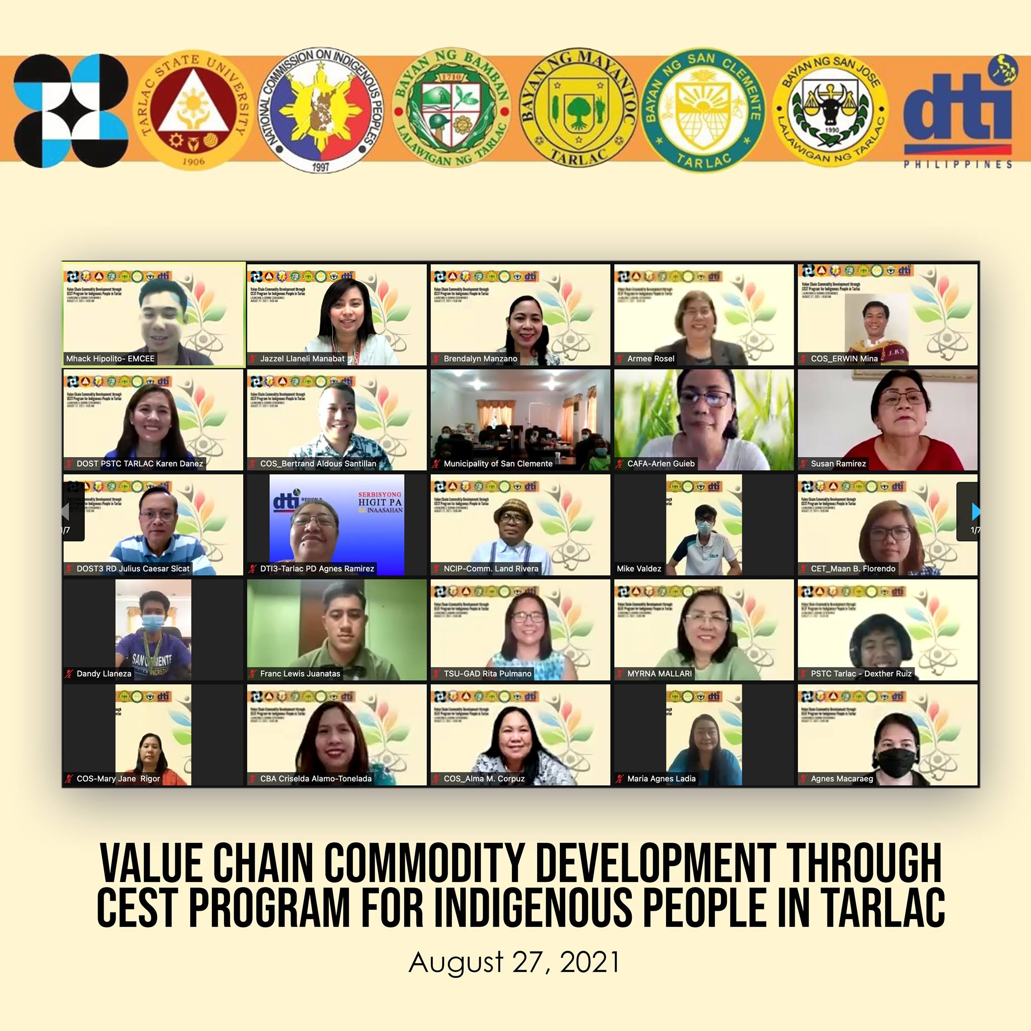 The project titled Value Chain Commodity Development through CEST Program for Indigenous People in Tarlac was officially launched earlier today via Zoom through the leadership of Tarlac State University in partnership with the Department of Science and Technology (DOST) III, DOST-Provincial Science and Technology Center (PSTC) – Tarlac, National Commission on Indigenous Peoples (NCIP), Department of Trade and Industry (DTI) III, and the municipalities of San Clemente, San Jose, Mayantoc, and Bamban.